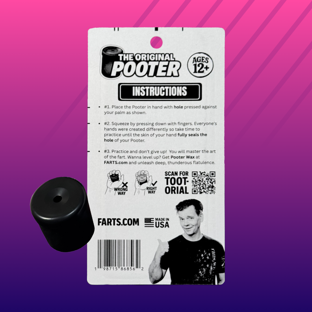 Squeeze the Pooter in the palm of your hand for the most realistic fart sounds in the world! No batteries needed!